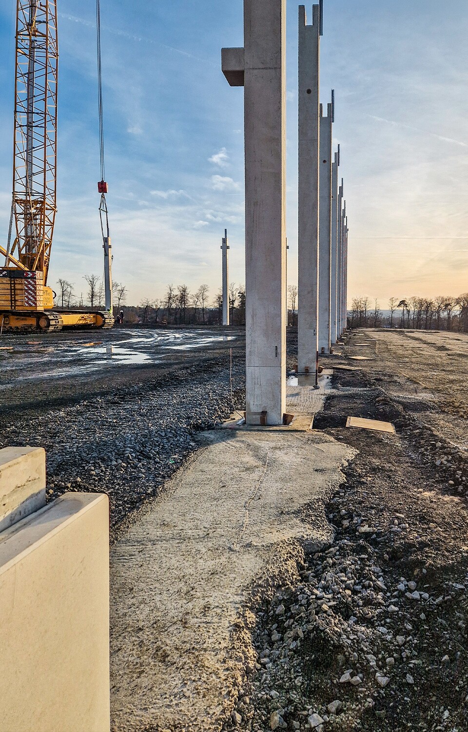 Die Integration in den Bestand umfasst die Anbindung an Mittelspannung, Sprinkler- und Brandmeldetechnik eines angrenzenden, weiter genutzten Gebäudes. Parallel müssen Kälte-, Strom- und Druckluftversorgung frühzeitig für die Maschineninstallation bereitstehen.