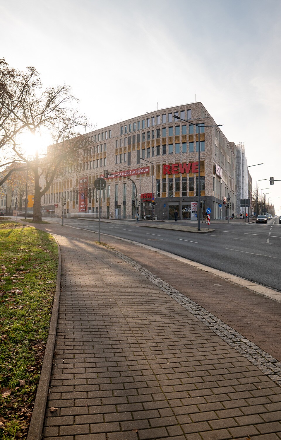 Im Erdgeschoss wird ein REWE-Markt mit einer Fläche von 5.500 m² errichtet. In den Geschossen oberhalb der Einkaufsbereiche werden zukünftig 24.118 m² von der TU Dresden als Unterrichts- und Büroräume genutzt werden. Die zwei Untergeschosse sind vorranging als Tiefgarage mit insgesamt 144 Stellplätzen sowie zur Unterbringung der Gebäudetechnik und für Lagerflächen geplant. Im 1.OG entsteht noch ein Parkdeck als offene Großgarage mit 95 Stellplätzen. Das Parkdeck wird intensiv begrünt.