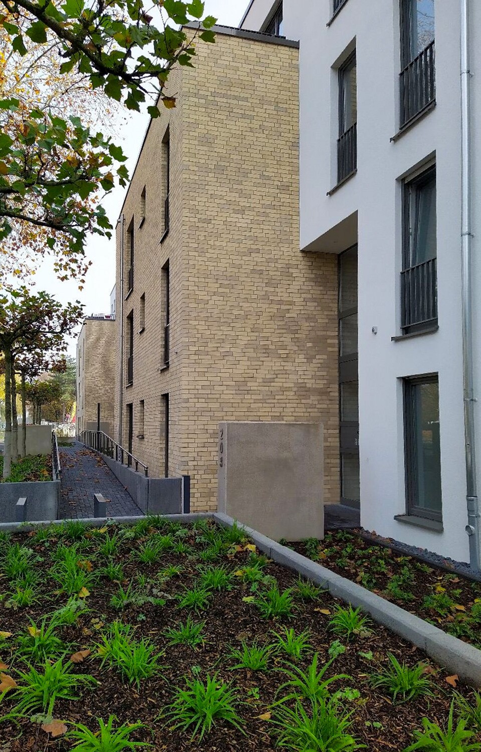 In beiden Bauabschnitten wurden Mietwohnungen mittleren Ausbaustandards errichtet. Die Fassaden wurden als WDVS mit Klinkerriemchen bzw. Oberputz hergestellt; der Betrieb der Heizungsanlage erfolgt mittels Wärmepumpen und Gasbrennwertgeräten.
