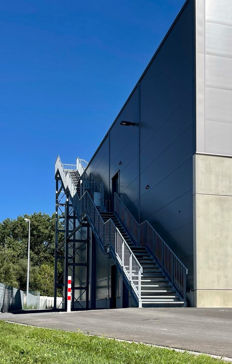 Nach verschiedenen Maßnahmen zur Bodenverbesserung sowie einem großflächigen Bodenaustausch im Bereich von Rigolen, Sedimentationsanlagen und Löschwassertank wurden über 440 Stahlbetonfertigteile sowie 1.500 m² Hohlkörperdecken montiert. Die Fassade besteht aus 100/120 mm Iso-Paneelen. An drei Kopfbauten ist seitlich eine Fassadenbegrünung angepflanzt. Über den Mezzaninbereichen befindet sich zudem ein extensives Gründach. Die Stahlfaserbetonplatte im Hallenbereich ist mit einer Fußbodenheizung ausgestattet, die eine Heiz- und Kühlfunktion besitzt. Eine Photovoltaikanlage versorgt die Wärmepumpe mit Strom. Das Gebäude hat die Auszeichnung DGNB Gold.