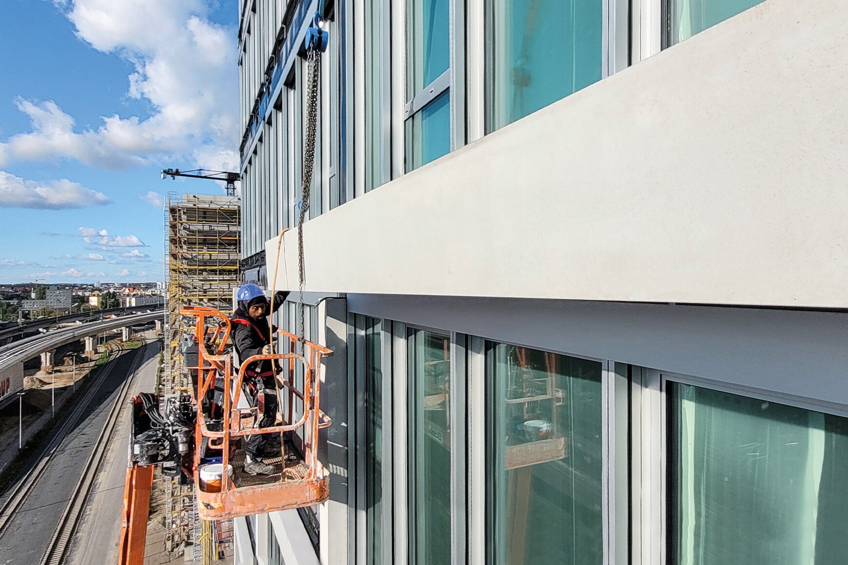 Das Büroensemble QH Track im Berliner Quartier Heidestraße setzt neue Maßstäbe: Mit 550 Metern Länge und 104.000 m² Bürofläche gehört es zu den größten zusammenhängenden Bürokomplexen der Hauptstadt. Dreßler Bau übernimmt bei diesem Projekt die Planung, Herstellung und Montage von 1.834 vorgehängten Architekturbetonelementen für fünf der insgesamt neun Gebäude.