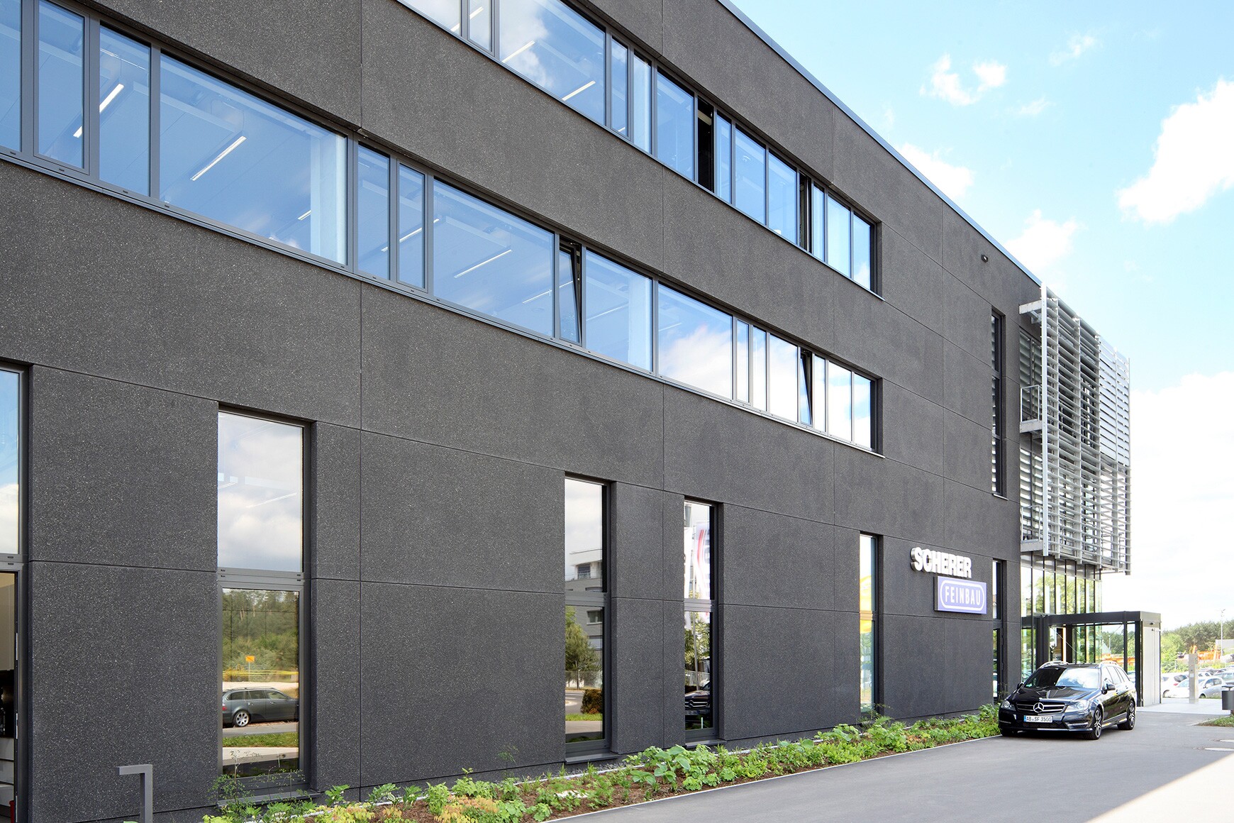 Wir errichteten für die Fa. Scherer Feinbau aus Mömbris ein neues Betriebsgebäude, bestehend aus einem 3-geschossigen Verwaltungsgebäude, einer Produktionsstätte (ca. 4.000 m²) und einer Kalthalle einschließlich Außenanlage.