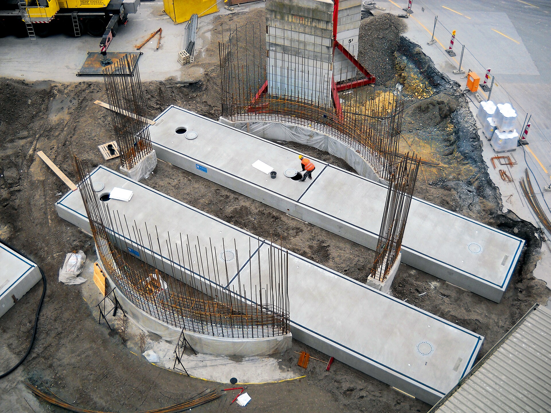 Moderne Betonfertigteile verbinden ästhetischen Wert mit innovativer Technik. Sie steigern den Nutzungskomfort eines Gebäudes, indem sie innovative Technik hinter optisch reizvollen Oberflächen verbergen: So lassen sich Heiz- und Kühlsysteme in Decken und Wände integrieren oder Wandflächen als solare Massenspeicher nutzen. Durch die serielle Produktion solcher Spezialbauteile realisieren wir die ästhetisch-funktionalen Lösungen aus Betonfertigteilen besonders kostengünstig.