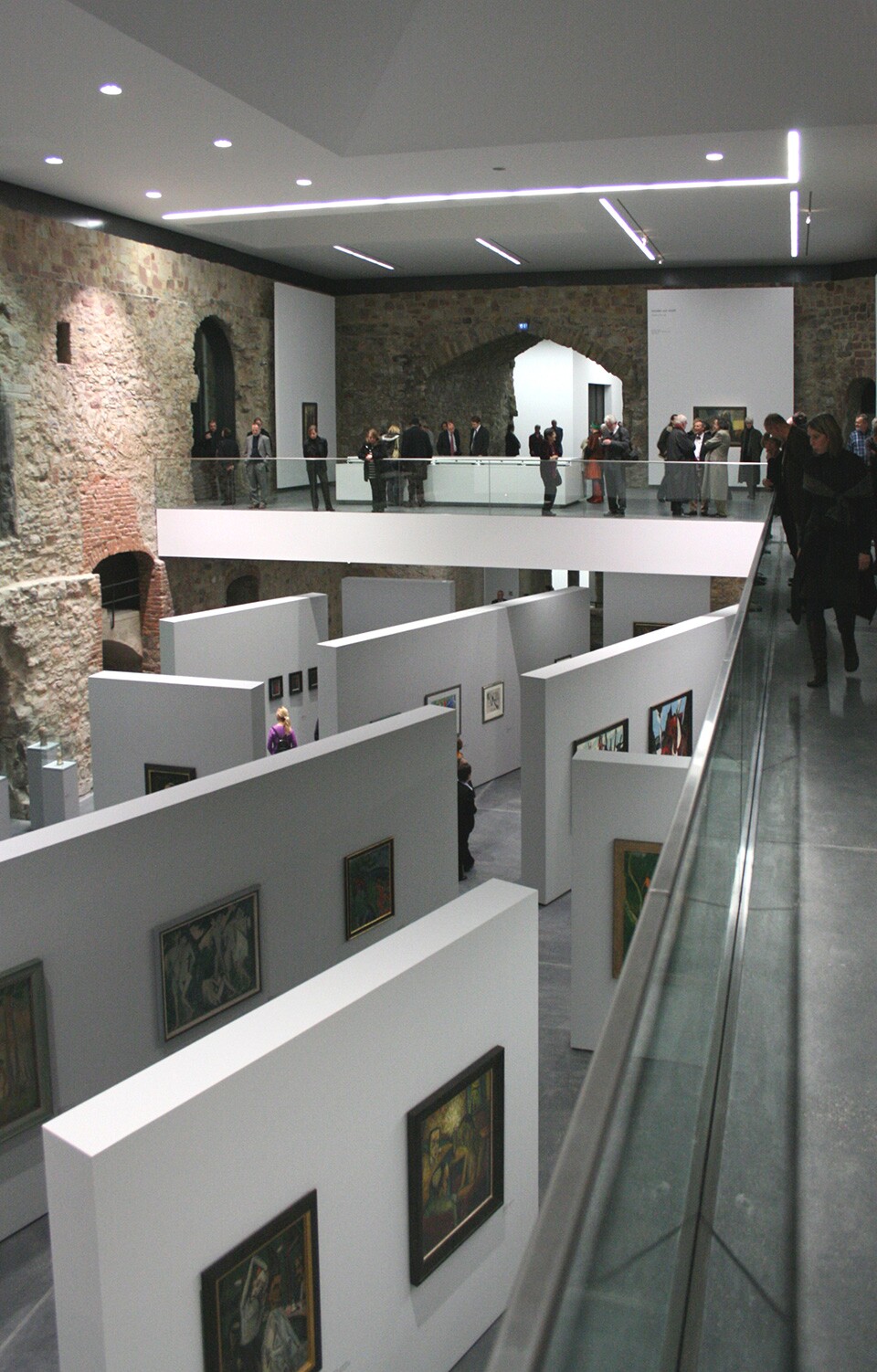 Die in der Spätgotik erbaute Vierflügelanlage wurde nach einem Brand im Dreißigjährigen Krieg teilweise wiederaufgebaut. West- und Nordflügel waren noch als Ruine erhalten. Der Ausbau dieses Teils der Moritzburg bringt dem Museum eine zusätzliche Nutzfläche von 2.500 m². Der Entwurf der Architekten bindet West- und Nordflügel zusammen und nimmt mit der Stahlkonstruktion des Dachs Bezug auf die vorhandene unregelmäßige Dachlandschaft der Burg. Die neuen Ausstellungsräume im Inneren sind in den Obergeschossen von der Dachkonstruktion abgehängt. Durch die Kombination der modernen Architektur aus Stahl und Beton mit dem historischen Mauerwerk wird das Kunstmuseum so zu einem ganz besonderen Raumerlebnis. Beim Bau konnten wir auf die langjährigen Erfahrungen unserer Mitarbeiter bei der Sanierung kulturhistorischer Bauten zurückgreifen.