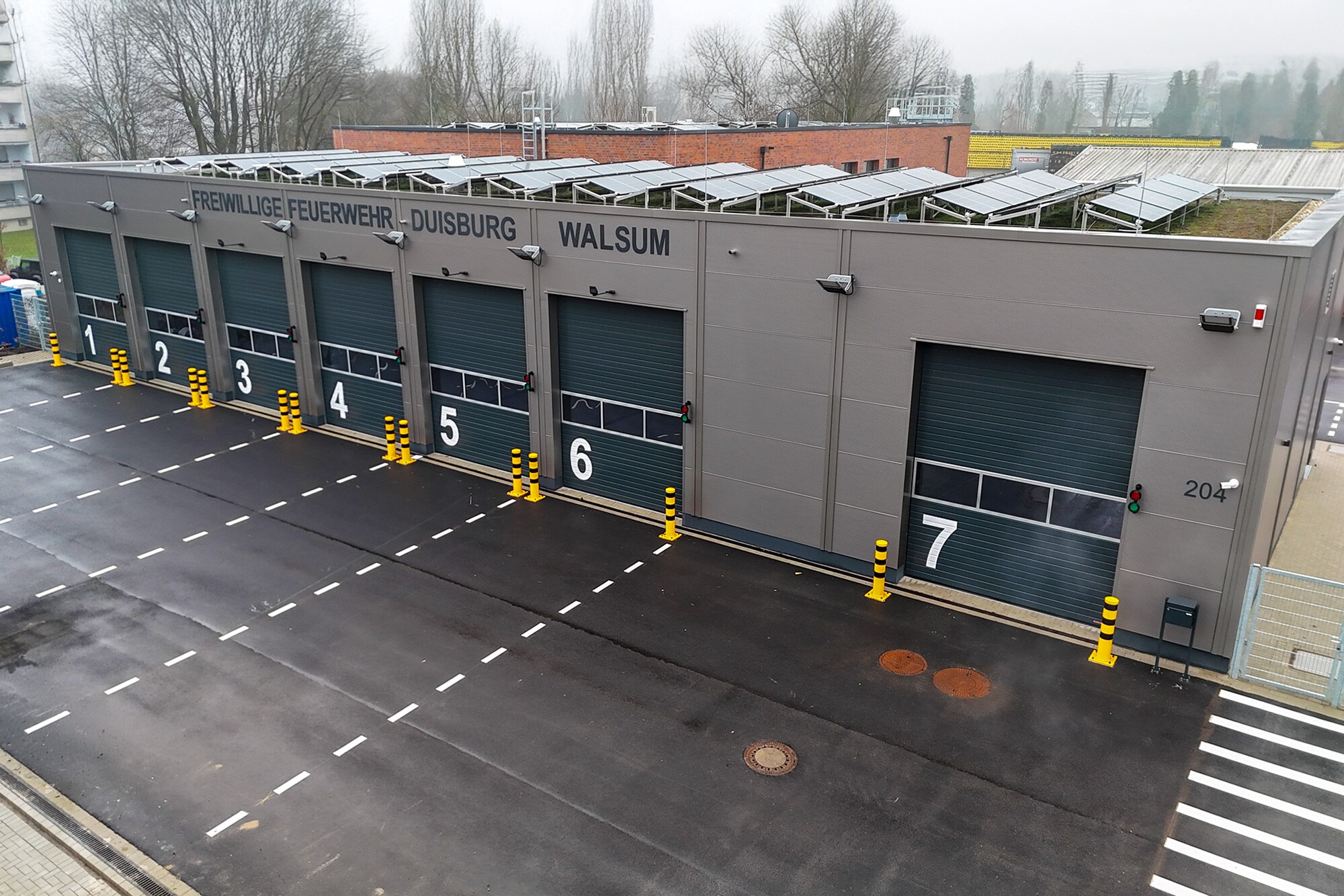 Im Stadtteil Walsum im Norden von Duisburg (rechtsrheinisch), in der Nähe der A59, entstand ein Gebäude für den Löschzug 410 der Freiwilligen Feuerwehr. Der Neubau besteht aus zwei Gebäudeteilen. Die eingeschossige Fahrzeughalle beinhaltet sechs Stellplätze für Einsatzfahrzeuge, eine Waschhalle und einen Lagerbereich. Im Süden schließt sich ein zweigeschossiger Massivbaukörper an, der den Umkleide- und Einsatzbereich sowie die Verwaltungs- und Sozialräume beinhaltet. Beide Gebäude erhalten ein Flachdach mit extensiver Dachbegrünung und Photovoltaikanlage.