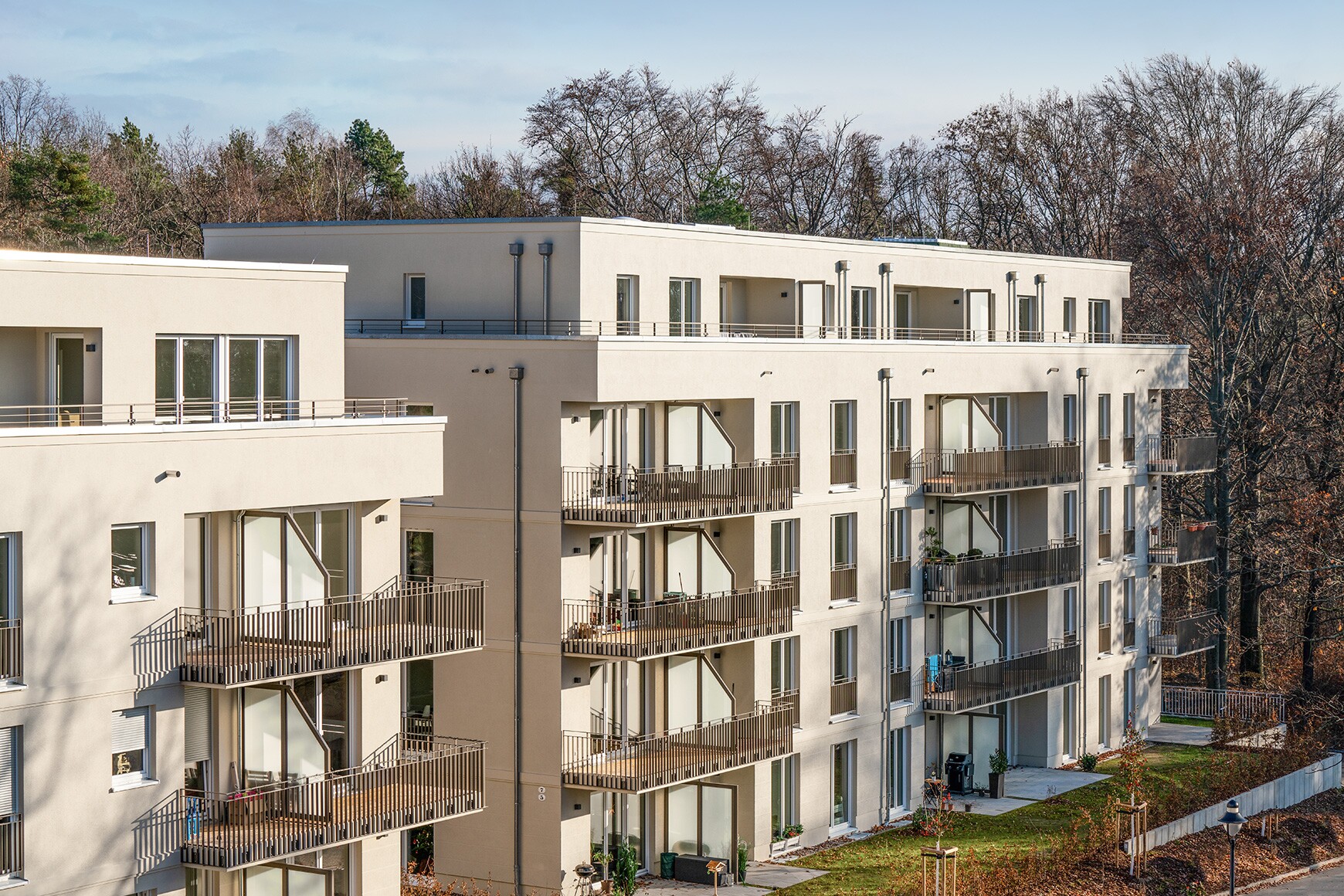 Auf dem Areal des früheren Weidner-Sanatoriums in Dresden-Wachwitz wurden im 3. Bauabschnitt zwei weitere Mehrfamilienhäuser mit insgesamt 44 Eigentumswohnungen und eine Tiefgarage mit 25 Stellplätzen errichtet. Bodentiefe große Fenster sorgen für lichtdurchflutete Räume. Tageslichtbäder und große Terrassen verbinden das Wohnen mit dem Park und führen zu einer eindrucksvollen Wohnphilosophie. Die Errichtung der Wohngebäude und der Tiefgarage erfolgte schlüsselfertig einschließlich der Ausführungsplanung. Die beiden Neubauten fügen sich harmonisch in die bereits bestehende Bebauung mit den Neubauten und den sanierten Altbauten ein und runden insgesamt das Ensemble am Wachwitzer Höhenpark ab.