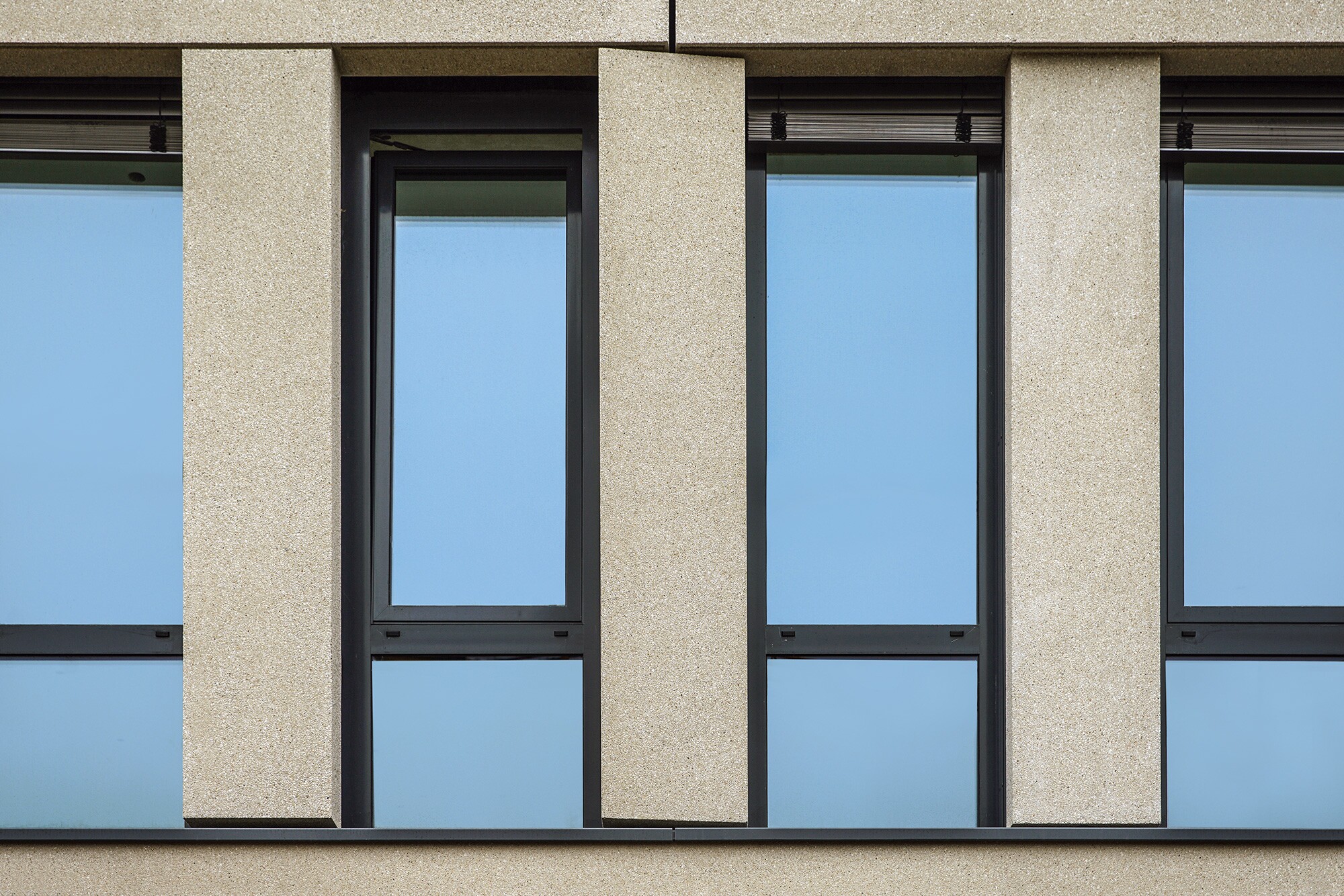Im Rahmen des Bauvorhabens Hofmark BF1 erhielten wir den Auftrag zur Erstellung der Fassade aus Architekturbeton. Um die Gebäudehülle mit ihrer beigen Farbgebung und den geradlinigen und zeitlosen Formen entwurfsgemäß zu erzielen, hieß es, die Elementstatik einschl. Schal- und Bewehrungsplänen zu entwickeln – und letztlich 361 Betonfertigteile inkl. Dämmung in unserem Werk in Stockstadt a. Main herzustellen und in München zu montieren. Die Gesamtfassade des Gebäudes besteht aus Fassadenelementen, die zum größten Teil als 2- und 3-stielige Kämme ausgebildet sind. Die Oberflächen wurden fein gewaschen. Dies verleiht den Elementen eine sehr hochwertige Anmutung. Die Lochfassade erstreckt sich über 4 Obergeschosse und hat eine feine Wellenstruktur erhalten.