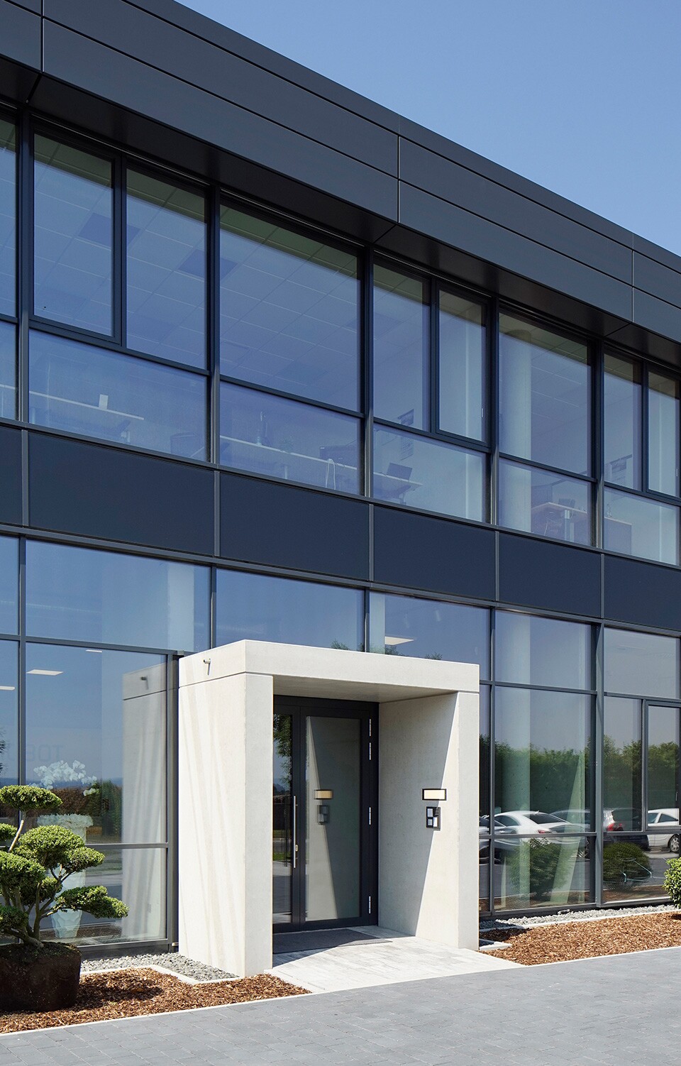Schlüsselfertiger Neubau einer 3.000 m² großen und 10,50 m hohen Produktionshalle, bestehend aus einer Stahlbetonfertigteilkonstruktion. Das zweigeschossige Büro mit einer 550 m² großen Grundfläche ist durch eine Brandwand von der Halle getrennt. Der größte Teil der Bürofassade besteht aus einer verglasten Pfosten-Riegel-Konstruktion. Der CPT-Sonnenschutz von Schüco ermöglicht bei herabgelassenem Zustand eine fast ungehinderte Sicht nach außen. Die Betonaußenwand ist mit Wärmedämmung und horizontal verlegten anthrazitfarbenen Stahlkassetten belegt. Das Foliendach der Halle ist durch vier 12 m lange Lichtbänder durchbrochen, die für eine Tageslichtbeleuchtung der Halle sorgen. Das warme Wasser für die Heizung wird neben einem 220-kW-Brennwertkessel vorrangig von einem BHkW erwärmt, das zusätzlich noch 20 kW/h Strom erzeugt.