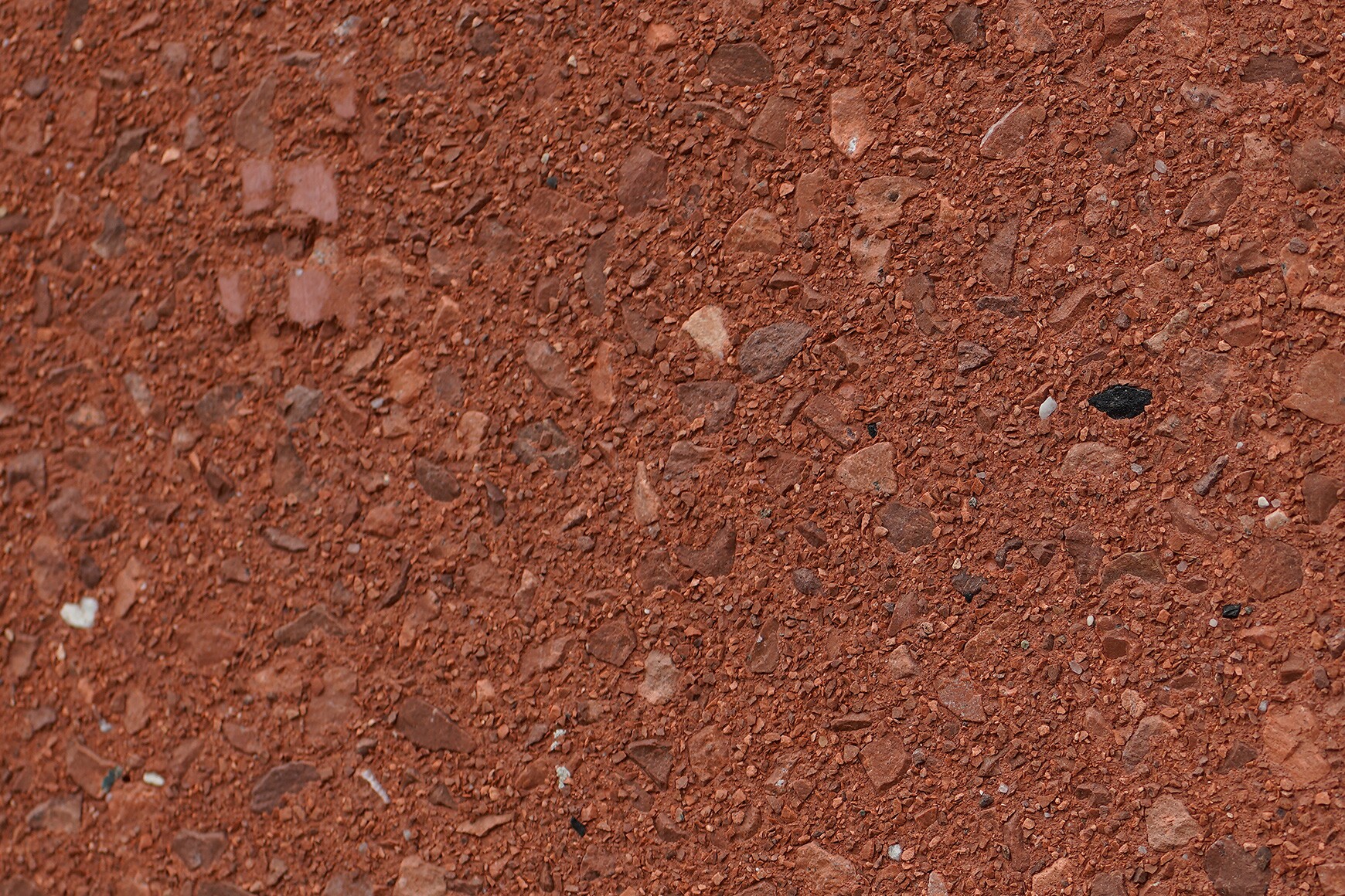 Die markante rote Betonfassade bildet den klaren Sockelbereich des Gebäudes und setzt zugleich einen gestalterischen Bezug zur regionalen Sandsteinarchitektur.
